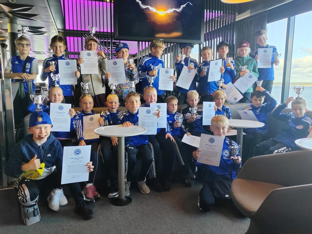 Palkintojenjaon jälkeen suihkun kautta pakkailut ja kohti satamaa. Ohjelmassa oli heti laivaan päästyä herkullinen buffet-ruokailu nälkäiselle porukalle. Pelaajat saivat ruokailusta vielä erikseen kiitosta henkilökunnalta, sillä olivat heidän sanojensa mukaan parhaiten käyttäytynyt junioriryhmä, mitä ovat ravintolassa nähneet! Ohjelmana laivalla oli vielä joukkueen oma palkintojenjakotilaisuus koko kauden osalta, jossa jokainen pelaaja sai mitalin, diplomin sekä kuinkas muutenkaan - Nappulaliigan logolla varustetun pokaalin. Satamassa kokoontui joukko iloisia poikia ja tyttöjä, joilla oli kotiinviemisinä herkkujen lisäksi roppakaupalla mukavia kokemuksia, onnistumisia ja yhdessä tekemisen riemua. Nopeimmat ehtivätkin jo laivalla kyselemään seuraavan kauden päätösmatkan perään :) Mallikkaasti sujuneen reissun perusteella tämän ryhmän kanssa voi jo lähteäkin pohtimaan seuraavan kauden tapahtumia!