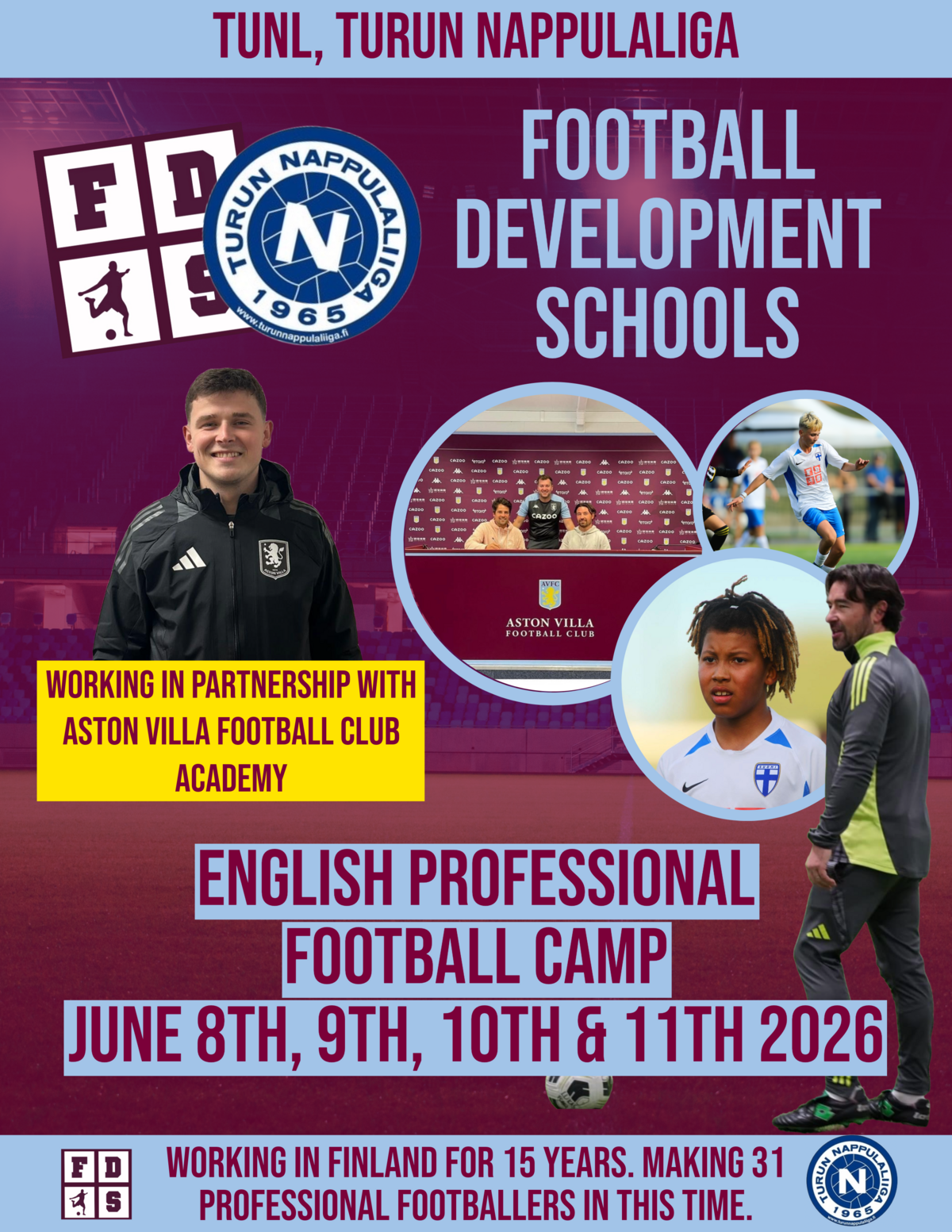 Turun Nappulaliiga järjestää yhdessä FDS/Aston Villan kanssa jalkapalloleirin 8.-11.6.2026